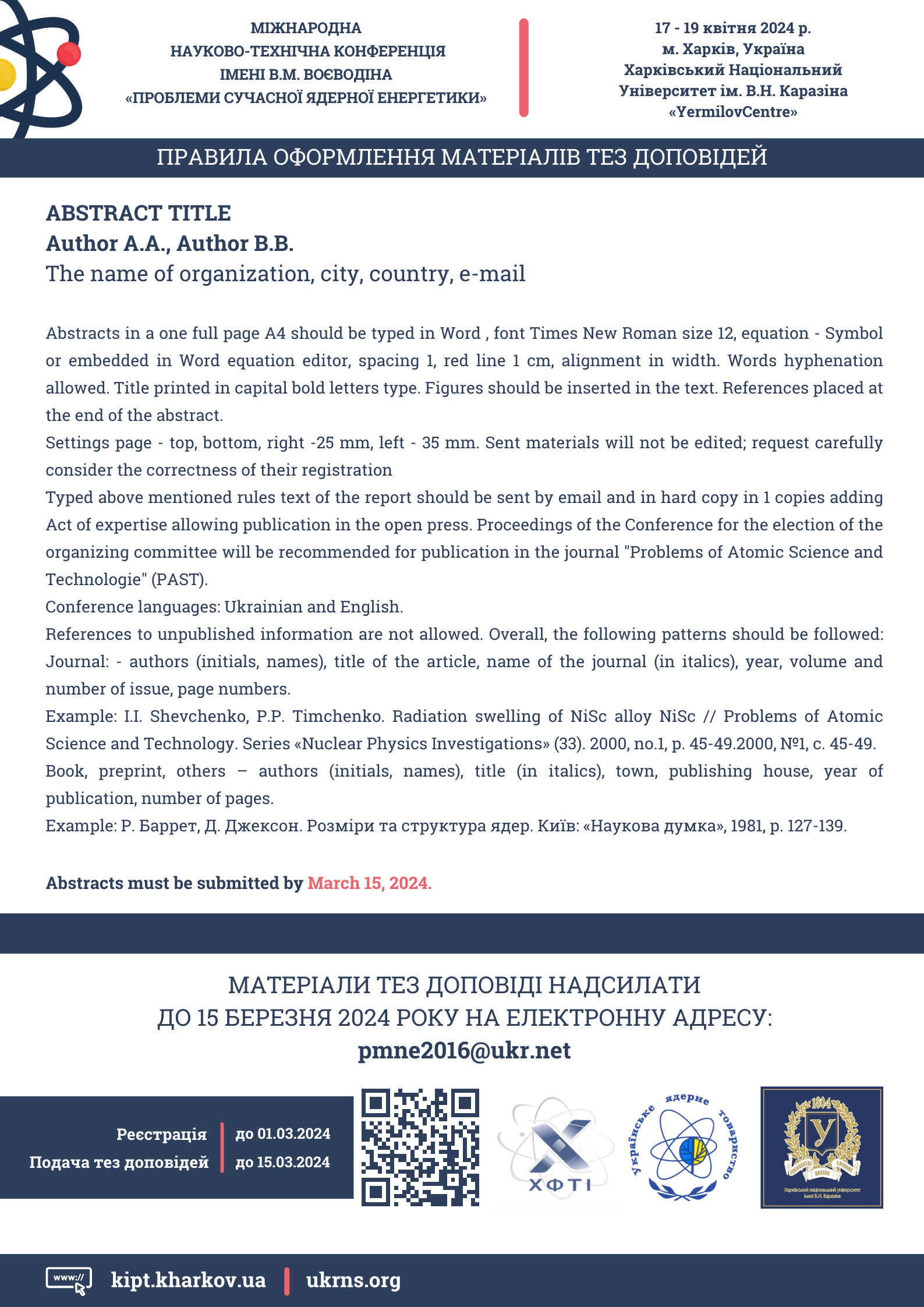 Подання заявок на участь та надання назв доповідей – до 15 березня 2024 р.