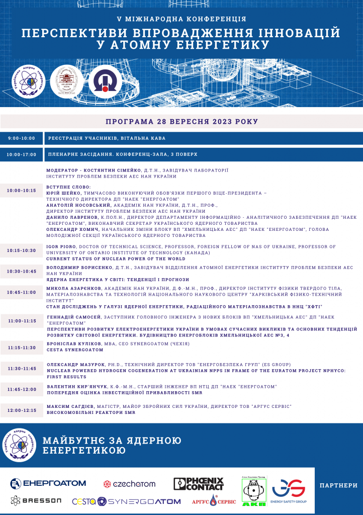 Програма V Міжнародної конференції “Перспективи впровадження інновацій у атомну енергетику”