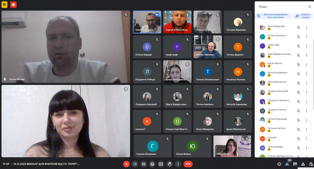 Участь у вебінарі взяли понад 30 вчителів з різних міст та регіонів України. Цього разу до ефіру приєдналася велика кількість освітян, а також і старшокласників Мар’їнської об’єднаної територіальної громади Покровського району Донецької області. Зокрема, участь у вебінарі взяла начальниця відділу освіти Мар’їнської військово-цивільної адміністрації Людмила Панченко.