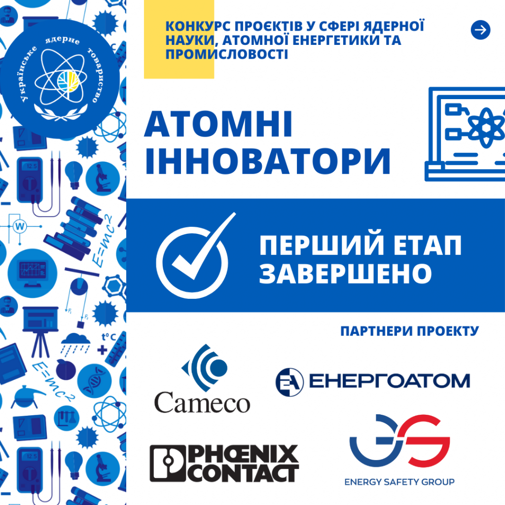 Завершено перший етап конкурсу наукових проєктів у сфері ядерної науки, атомної енергетики і промисловості “Атомні інноватори”
