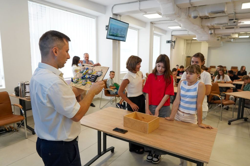 Фахівці НАЕК “Енергоатом” представили діяльність провідної енергетичної компанії України, оператора діючих атомних електростанцій, та розповіли про сучасний стан і перспективи розвитку галузі. Завдяки окулярам віртуальної реальності та макетам атомних станцій, школярі здійснили віртуальну екскурсію на одну з українських АЕС.