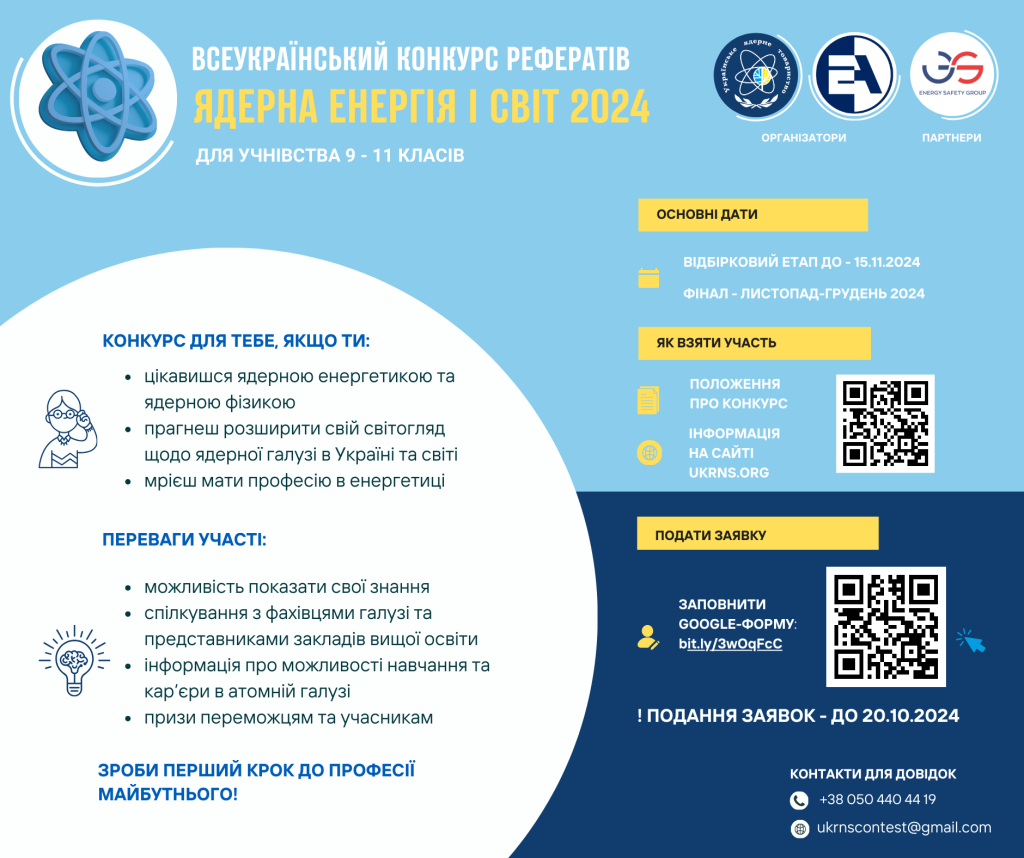 Оголошення Всеукраїнського конкурсу рефератів “Ядерна енергія і світ”-2024