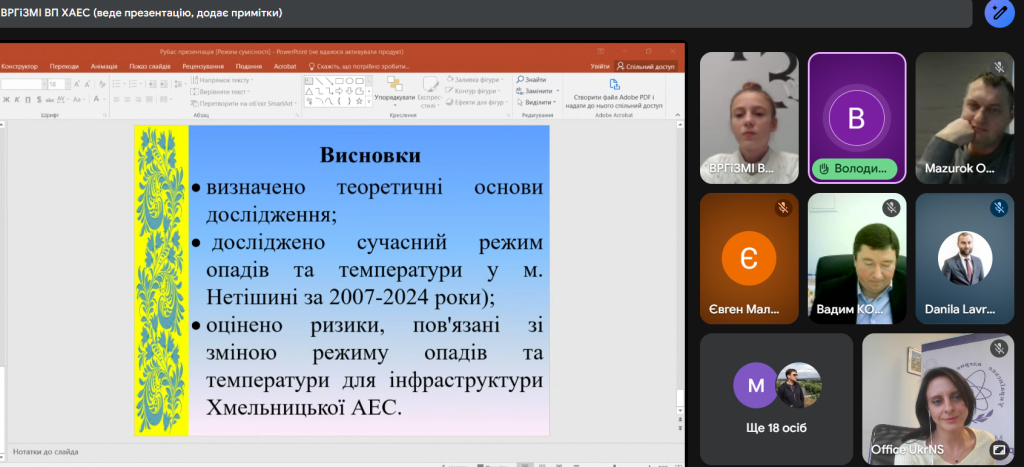 Вагомий блок досліджень стосувався ядерної та радіаційної безпеки, включаючи аналіз впливу радіації на людину і довкілля, оцінку ризиків для ядерної інфраструктури в умовах кліматичних змін, досвід великих ядерних аварій та сучасні підходи до забезпечення безпечної експлуатації АЕС. Окрему увагу учасники приділили поводженню з радіоактивними відходами, методам їх утилізації та зберігання, а також питанням ядерного паливного циклу.