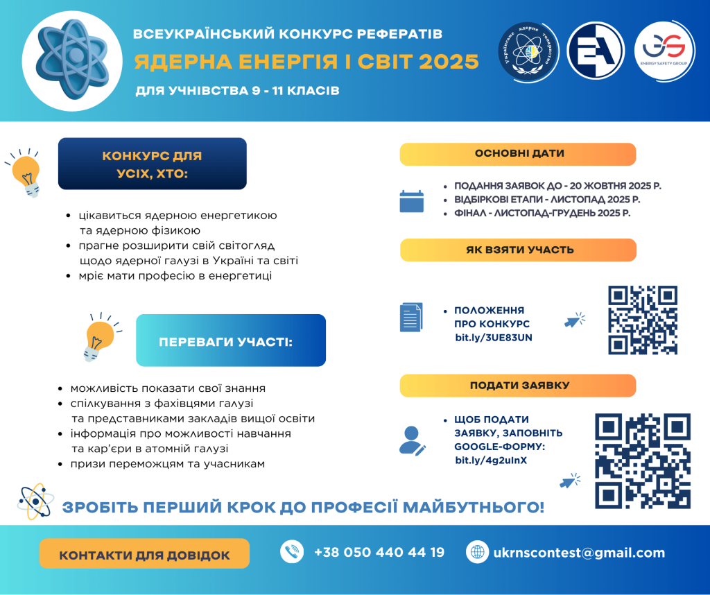 Запрошуємо до участі у конкурсі рефератів «Ядерна енергія і світ» – 2025