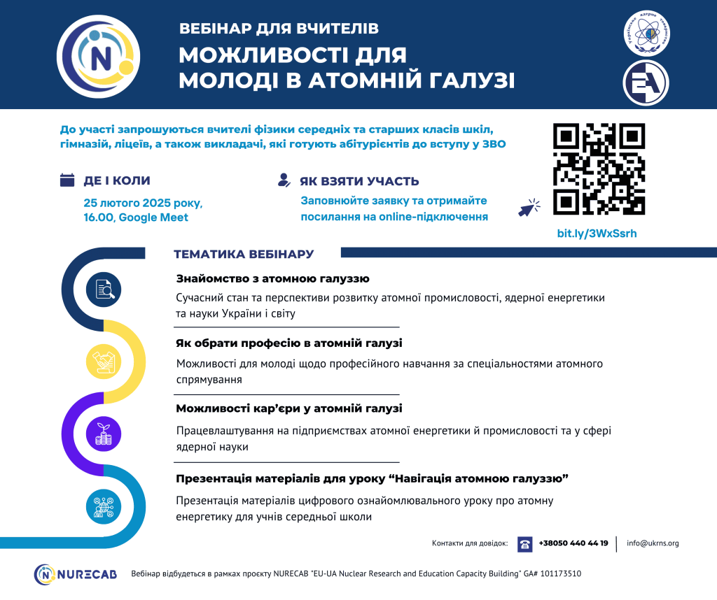 Вебінар відбудеться в рамках проєкту NURECAB “EU-UA Nuclear Research andEducation Capacity Building” GA# 101173510