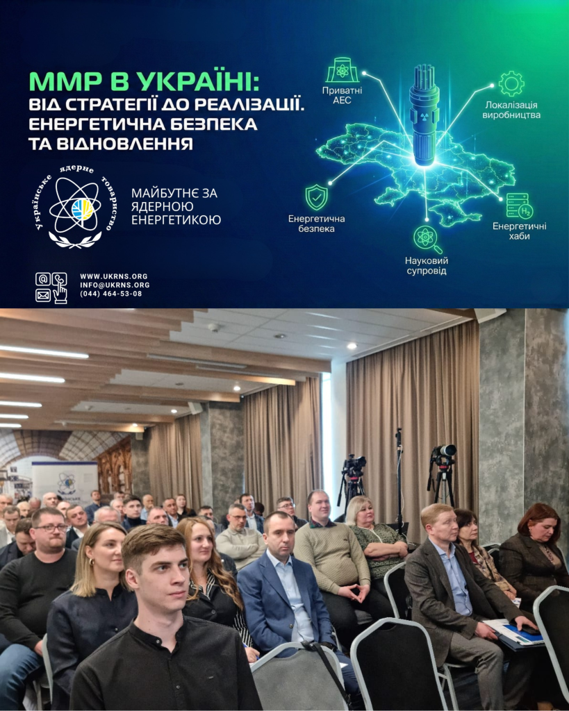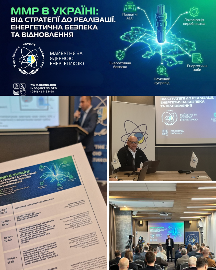 19 березня 2026 року в Києві відбувся масштабний круглий стіл «ММР в Україні: від стратегії до реалізації. Енергетична безпека та відновлення», організований Громадською організацією «Українське ядерне товариство» спільно з філією «ВП «Атомпроєктінжиніринг» АТ «НАЕК «Енергоатом». У заході, що став фаховим майданчиком для обговорення критично важливих питань розвитку атомної енергетики як фундаменту національної безпеки та повоєнного відновлення країни, якому взяли участь понад 50 фахівців та зокрема представники Верховної Ради України, Мінстерства енергетики України, Держатомрегулювання України, АТ “НАЕК “Енергоатом”, компанії «Holtec Internatioanal», а також провідних підприємств і наукових установ атомної та суміжних галузей.