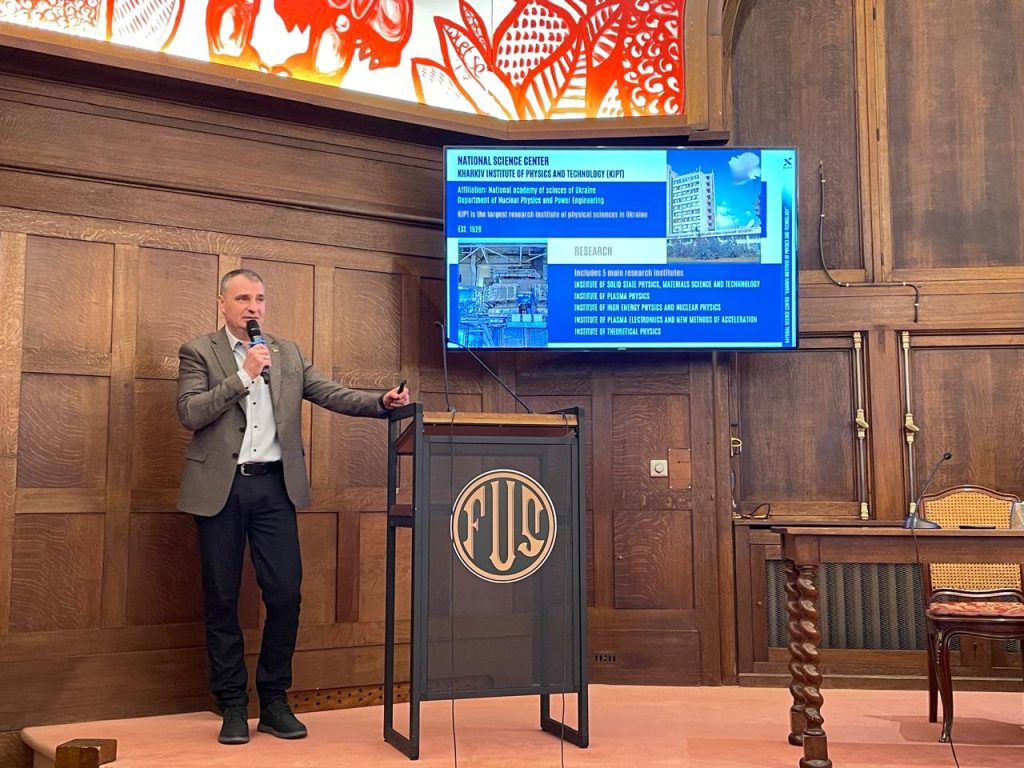 У доповіді представника ННЦ «ХФТІ» Сергія Пугача, учасники ознайомилися з кейсом Харківського фізико-технічного інституту, який продовжує свою роботу попри складну ситуацію у регіоні та близькість від лінії фронту, та досвідом КНУ імені Тараса Шевченка у підготовці кадрів у тісній співпраці з АЕС (доповідь представив завідувач кафедри ядерної фізики Ігор Каденко).