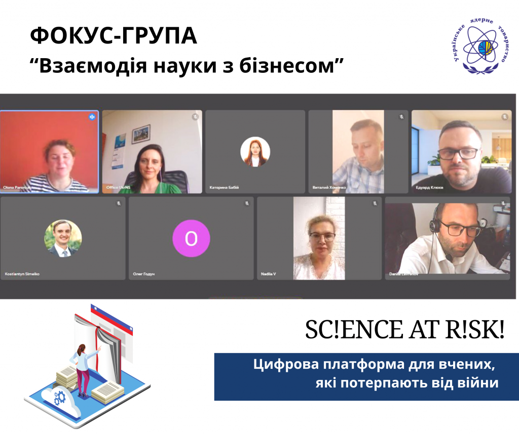 On August 28, the Ukrainian Nuclear Society, together with representatives of the Science at Risk project, held an online focus group with nuclear industry specialists “Interaction of science with business”.
