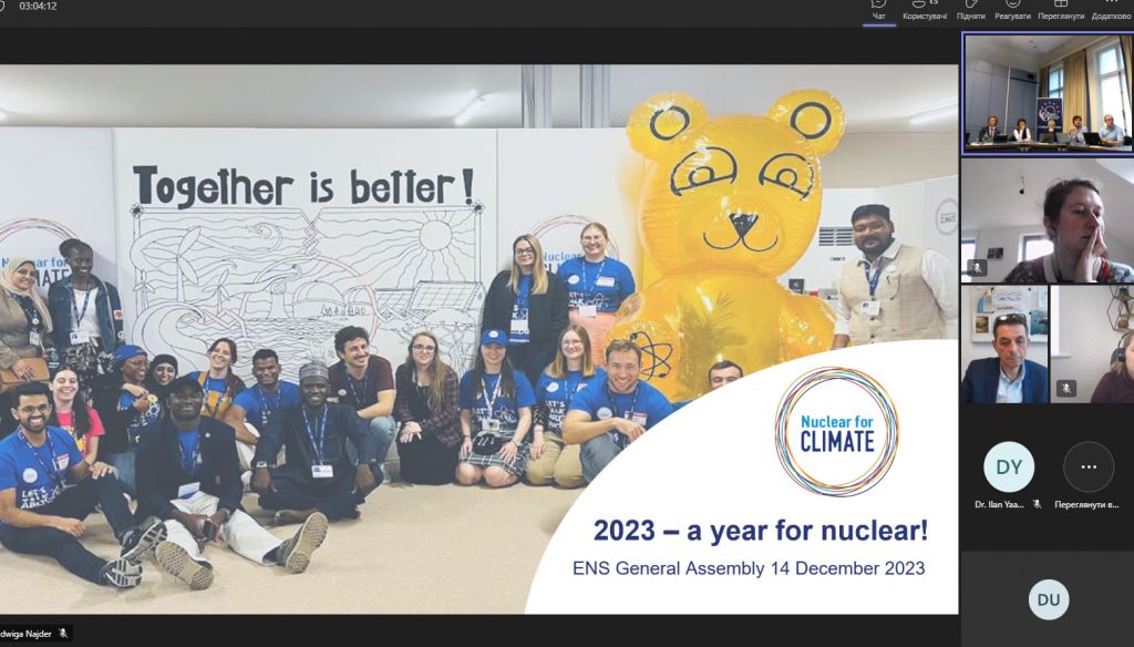 On December 14, 2023, the General Assembly of the European Nuclear Society was held, during which reports on the organization’s activities, plans for the future were outlined, as well as elections for the ENS President, and Board members were held. The event was held in a mixed format.