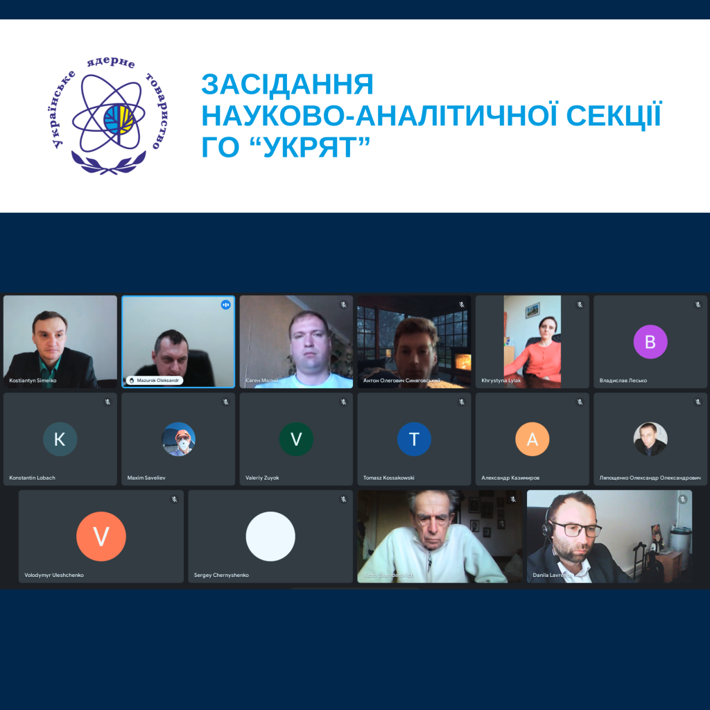 The meeting was attended by members of the Board of the UkrNS and directly from the Scientific and Analytical Section of the Society, as well as other specialists from enterprises and organizations.