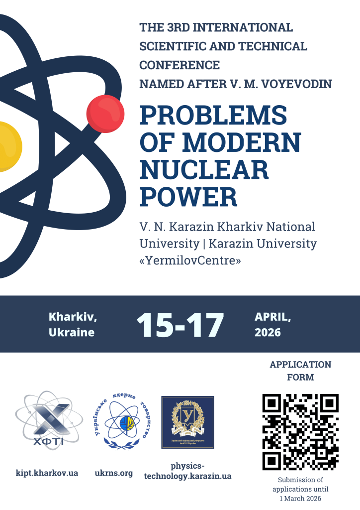 On April 15–17, 2026, the 3rd International Scientific and Technical Conference named after V. M. Voyevodin “Problems of Modern Nuclear Power” will take place in Kharkiv, Ukraine.