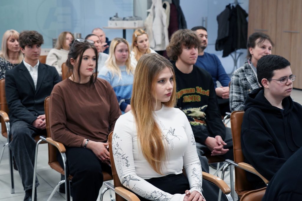 Other finalists also attended the event, including students of Kyiv Lyceum No. 113 Anna Opryshko and Kateryna Volynets, as well as Stanislav Pavlenko from Kyiv Lyceum No. 309, accompanied by their supervisors and parents. The organizers also congratulated participants and teachers of the qualifying stage of the competition—students of the Irpin Professional College of Economics and Law, graduates of Kurakhove Secondary School No. 1 (Donetsk region), which is currently located in the temporarily occupied territory of Ukraine. These students actively participate in numerous youth projects organized by Energoatom and the Ukrainian Nuclear Society and demonstrate a strong interest in nuclear topics.