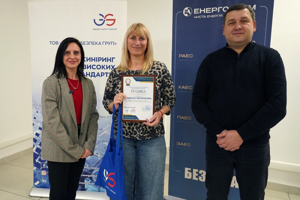 At the invitation of Energoatom, prize winners and finalists from Kyiv and the Kyiv region visited the company’s office, where they were ceremoniously awarded participation diplomas, valuable prizes, and commemorative gifts.